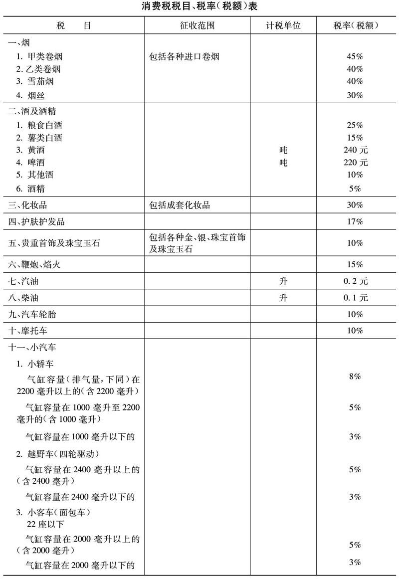 二、增值税、消费税的税目、税率(税额),依照本通知所附的《增值税税目税率表》和《消费税税目税率(税额)表》执行。