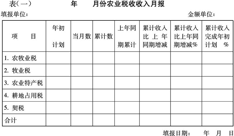 (一)农业税收入