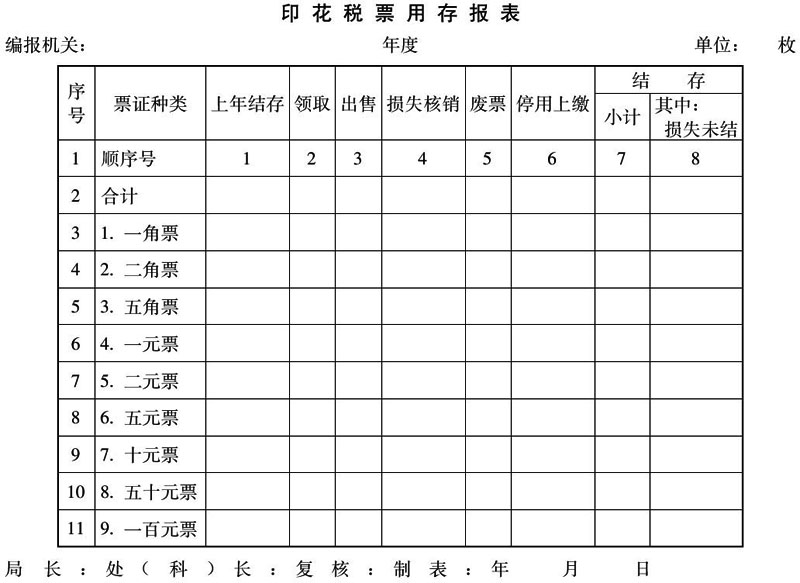3.第七栏停用上缴指印发机关规定停用上缴销毁的票证。
