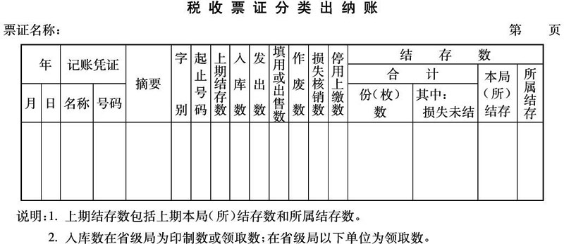 第十六条 税收票证核算。各级税务机关都必须按票证种类、领用单位(人)设置“税收票证分类出纳账”(见附件),依据票证领用单或交接清单、票款结报单、票证缴销表、票款结报手册和票证损失报告单等票证原始凭证,对各种税收票证的领发、用存、作废、结报缴销、停用上缴、损失和销毁的数量、号码进行及时的登记和核算,定期结账,据以核对票证结存数,并按期编制“税收票证用存报表”和“印花税票用存报表”(见附件),报送上级税务机关。票证核算的各种原始凭证应及时整理,装订成册,妥善保管。年度终了,各级税务机关还必须将票证管理情况以书面形式逐级报告上级税务机关。