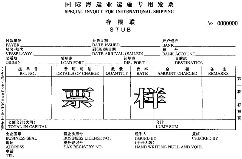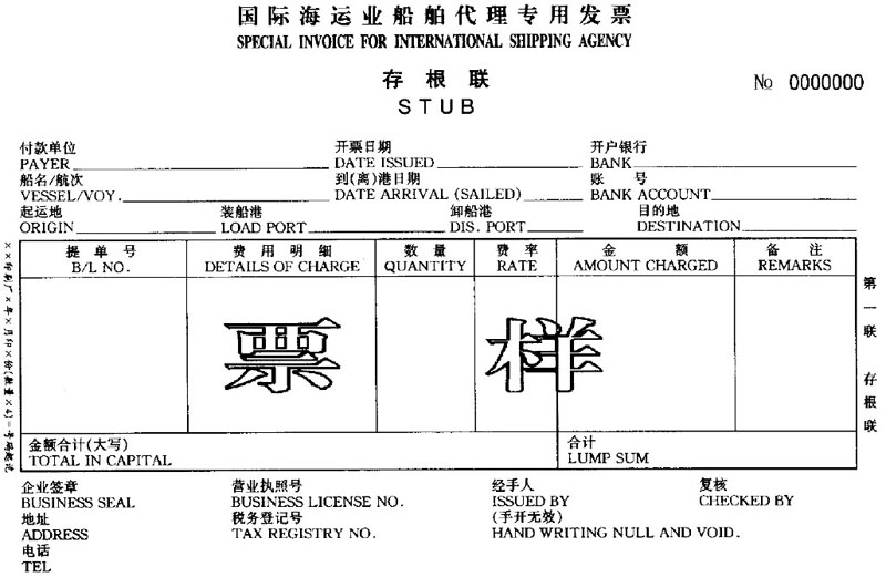 国际海运公司和外商独资船务公司及其分公司使用《国际海运业运输专用发票》,国际海运船舶代理公司使用《国际海运业船舶代理专用发票》。