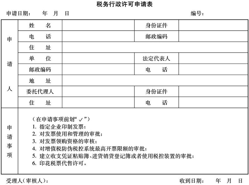 (×××国、地)税许受字第( )号