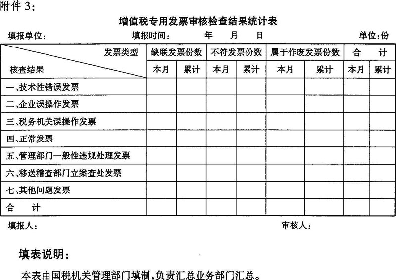 3.增值税专用发票审核检查结果统计表