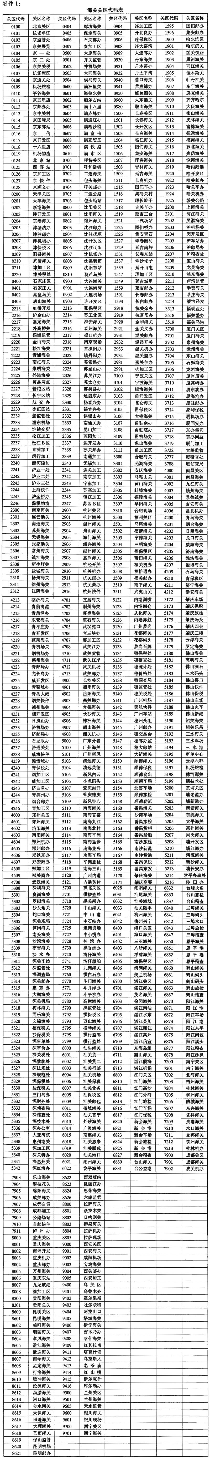 附件:1.海关关区代码表