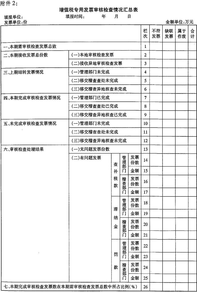 2.增值税专用发票审核检查情况汇总表