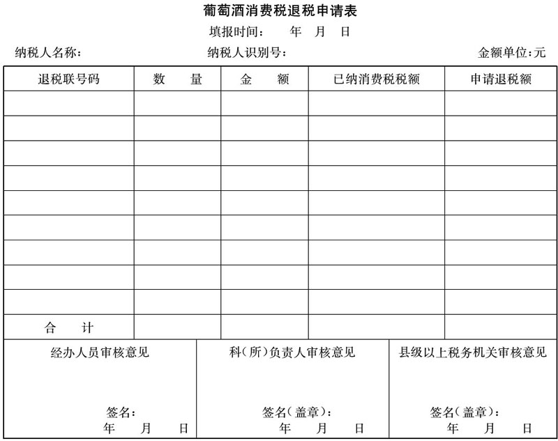 第十三条 销货方收到主管税务机关转交的证明单退税联后,应填报《葡萄酒消费税退税申请表》(以下简称退税申请表,见附件3),持证明单退税联及退税申请表向主管税务机关申请退税。