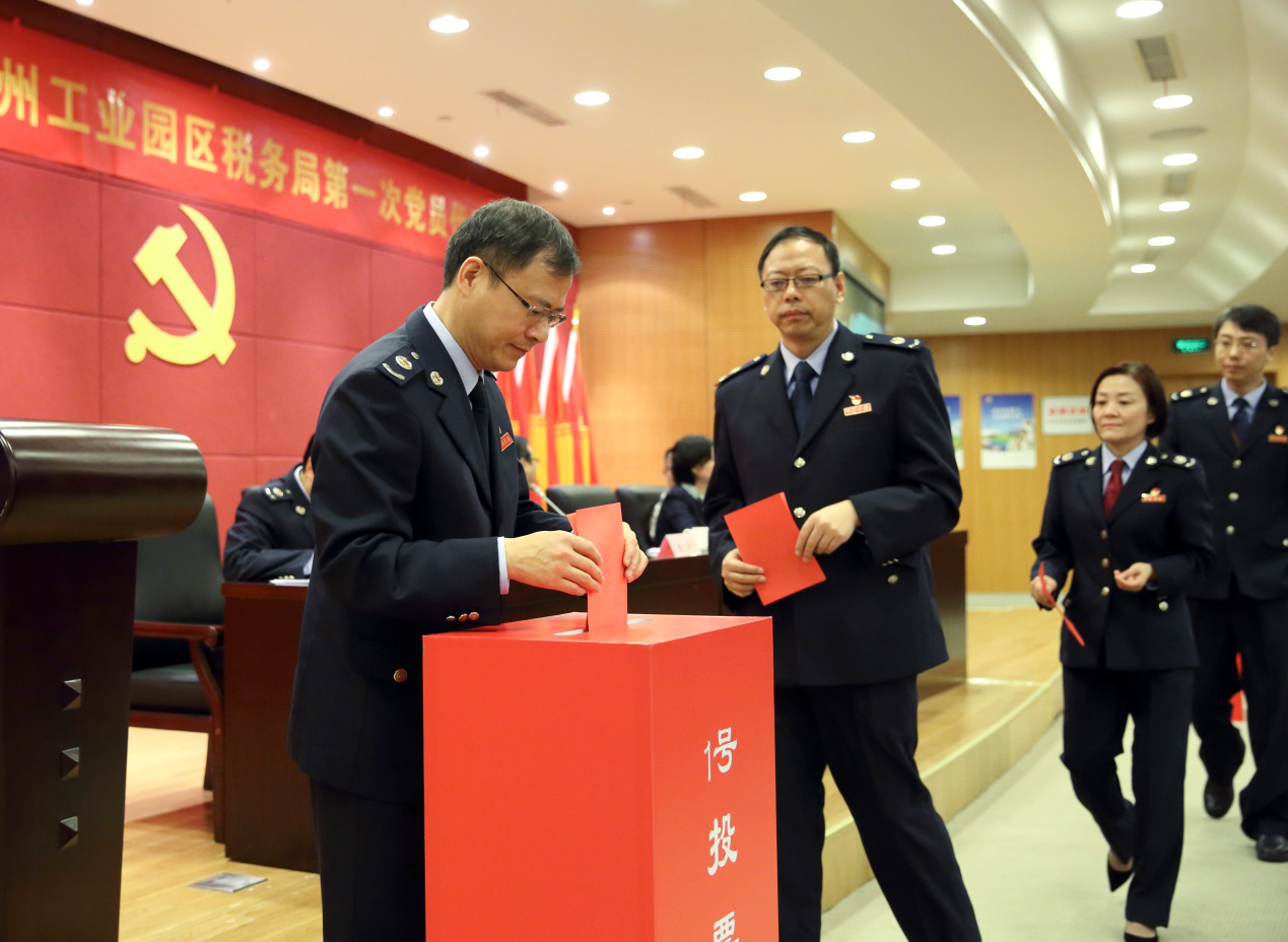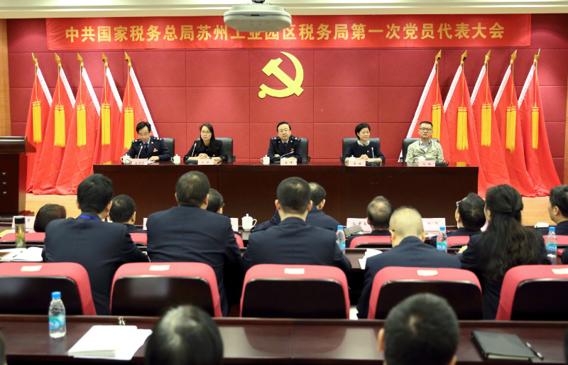 2018年10月29日,在庄严的国歌声中,中共国家税务总局苏州工业园区税务局召开新机构成立后的第一次党员代表大会。选举产生第一届机关党委和机关纪委委员。江苏省税务局第六联络(督导)组常务副组长陈灏,苏州工业园区党工委组织部副部长陈华,园区监察工委副主任唐皓到会指导。园区局党委书记、局长马伟同志作了讲话,园区局党委委员、副局长张伟宏同志主持会议。园区局机关各科室、各派出机构共111名党员代表参加了会议。