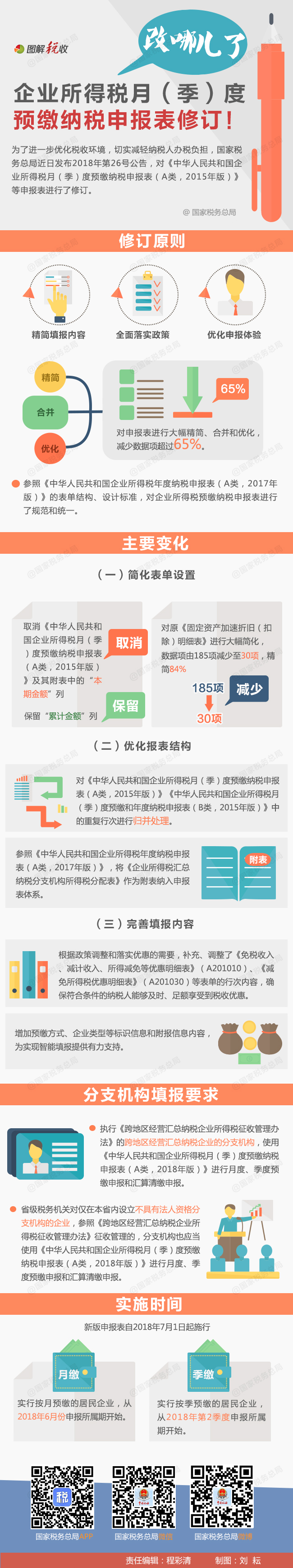 国家税务总局关于发布《中华人民共和国企业所得税月(季)度预缴纳税申报表(A类,2018年版)》等报表的公告