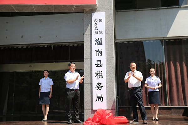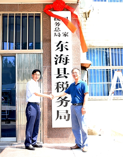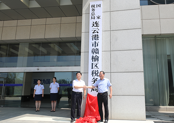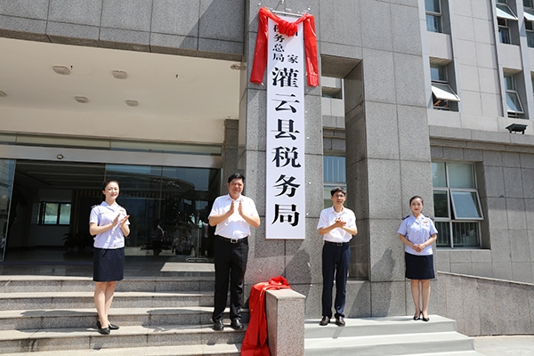 国家税务总局江苏省税务局联合党委委员谢中东和灌云县委书记左军共同为国家税务总局灌云县税务局揭牌。江苏省税务局第9 联络(督导)组常务副组长陈日生,连云港市税务局联合党委书记、局长樊良生,联合党委委员、总经济师杨树年,灌云县委常委、常务副县长刘盾出席挂牌仪式。国家税务总局灌云县税务局联合党委书记、局长魏东主持挂牌仪式。