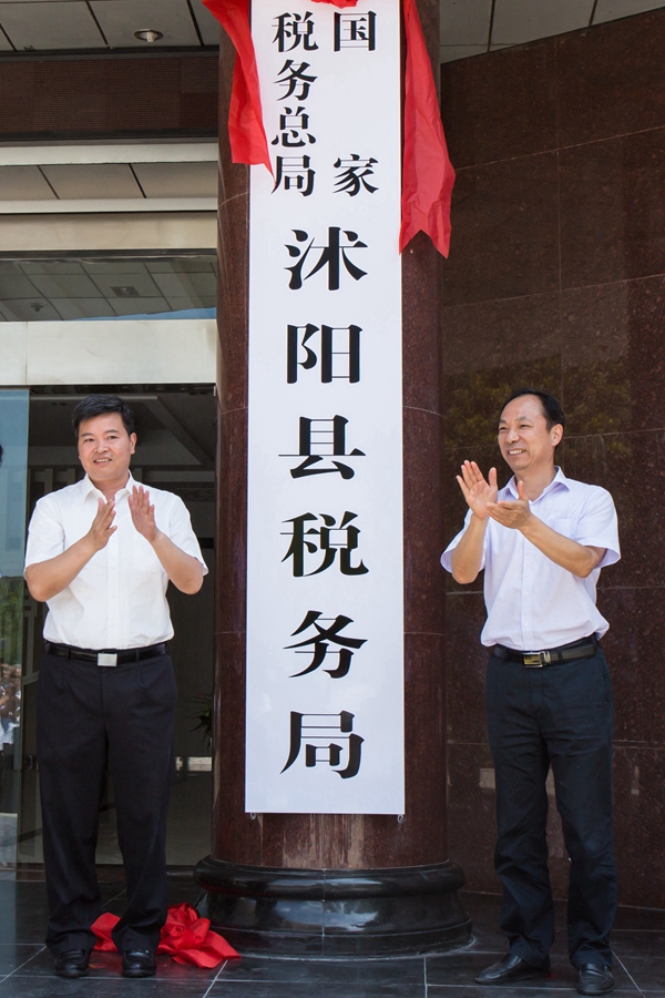 沭阳县委书记、沭阳经济技术开发区党工委书记卞建军和国家税务总局宿迁市税务局联合党委副书记、副局长陆丰泉共同为国家税务总局沭阳县税务局揭牌。国家税务总局宿迁市税务局联合党委委员、总经济师宋善忠,县委常委、常务副县长杨云峰出席挂牌仪式。