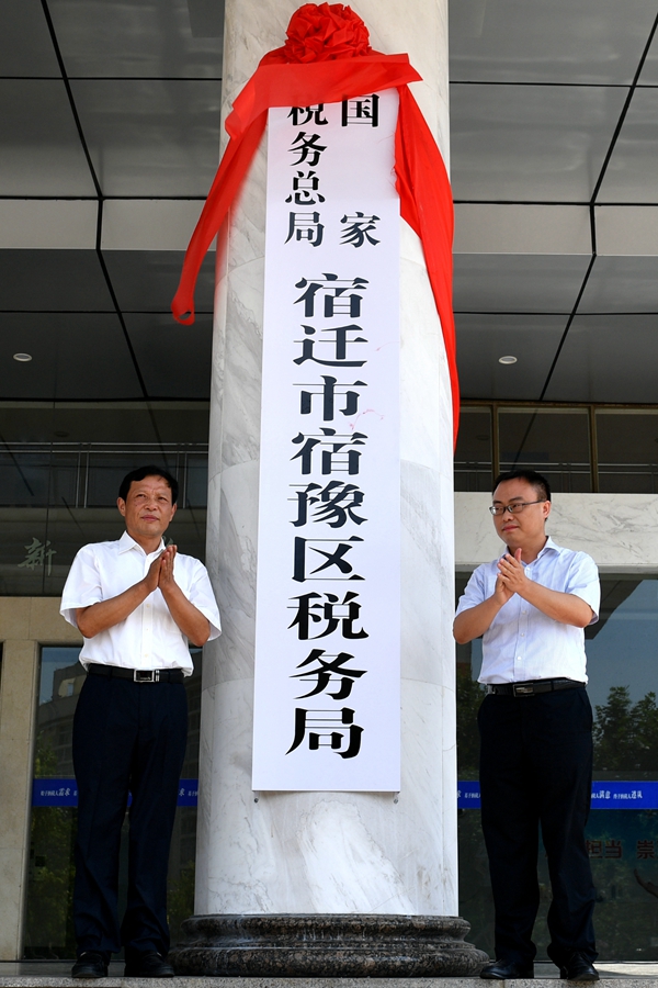 国家税务总局宿迁市税务局联合党委委员、副局长吴强和宿豫区委常委、常务副区长陈磊共同为国家税务总局宿迁市宿豫区税务局揭牌。国家税务总局宿迁市税务局党委委员、副局长张诚出席挂牌仪式并致辞。