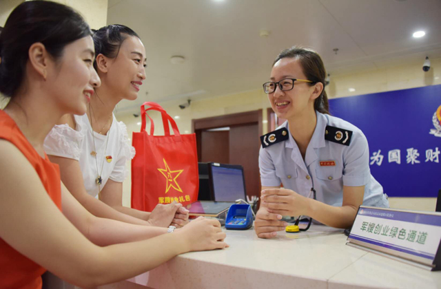 “国家有哪些税收优惠政策扶持我们从事个体经营的随军家属创业?”“军嫂创业享受税收优惠政策如何申请办理?”7月27日下午,国税地税机构合并挂牌刚一周,国家税务总局南京市建邺区税务局办税服务大厅迎来了一批特殊的客人,她们围在大厅内专设的“军嫂创业绿色通道”前向税务人员咨询创业涉税相关政策,亲身感受着税务部门新推出的“一厅通办”“一网办理”“一键查询”等便捷化服务,希望搭乘上这趟改革的“顺风车”,实现自己的创业梦。