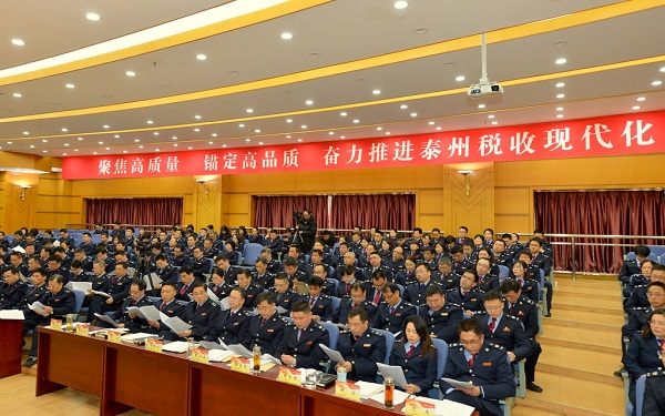 1月28日下午,泰州市局召开全市税务工作会议。会议以习近平新时代中国特色社会主义思想为指导,全面贯彻党的十九大和十九届二中、三中全会精神,认真落实全国、全省税务工作会议和市委五届六次会议精神,回顾总结2018年工作,研究部署2019年任务。