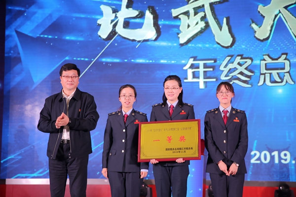 镇江市局孙虹局长讲话指出,年终决赛暨技能大赛既是镇江税务主题教育成果的一次大展示、大交流,也是镇江税务铁军的一次大比武、大阅兵。全系统广大税务干部要以此为契机,在今后的工作中,自觉向高手看齐,主动与强手过招,以“我不干,谁干!”的担当精神,投身到税收现代化的新征程中去。