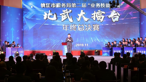 11月29日下午,镇江市局成功举办 “比武大擂台”年终总决赛暨第二届“业务技能大赛”,深化正在开展的第二批“不忘初心、牢记使命”主题教育,进一步激发全市税务干部以考促学、以赛促学的学习热情,引导税务干部不断提高勤学善思,担当作为的政治素养、专业能力和业务水平。在全员学习、每月一考、选拔竞赛的基础上,全系统8个代表队,24名选手闯进总决赛,参加业务技能大赛。省税务局党委委员、副局长李再胜、镇江市总工会党组书记刘正泰,市局党委书记、局长孙虹等领导指导本次业务技能大赛。
