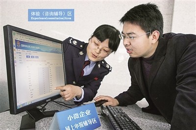 江苏省扬州市江都区的税务干部手把手辅导小微企业纳税人网上申报,确保每一户小微企业应享尽享优惠政策。