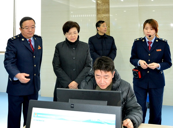 泰州市委书记韩立明仔细观看纳税人网上办税流程操作