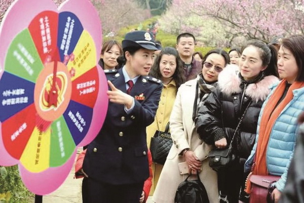 本报讯(通讯员 孙 军 程 璐 经济报记者 汤学平)3月9日,位于南京东郊的梅花山鲜花盛开,游人如织,梅花丛中挤满了参与税收宣传互动的游客和市民。以国家减税降费新政为主题的灯谜竞猜、两会知识问题幸运转盘、个税新政现场咨询……由南京市税务系统税收宣传志愿者举办的“便民办税春风行动”系列活动成为满山梅花中的一道亮丽风景。