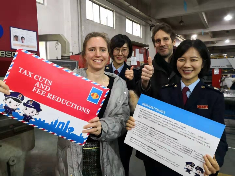 交谈中,史友琳也流露出一些担忧,公司要持续发展,科技研发的资金量大,发展中困难还有许多….. “2019年的我国《政府工作报告》里明确了制造业等行业的税率将从现行的16%降至13%,你们企业的税负将会大大降低!” 听了同行志愿者李敏的话,史友琳拉着爱人Boris Tefsen 开心地笑了,连声说:“希望减税降费的政策早日惠及我们外企,这样我们又可以节省出一大笔钱用于技术研发发展了,我要马上发信息告诉远方的家人,我和Boris在姑苏城生活、创业真的挺好的!”