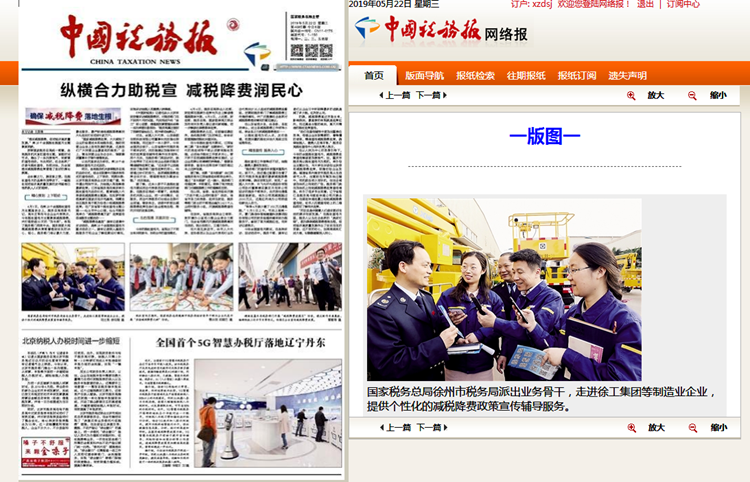 【中国税务报】头版:徐州市税务局走进徐工宣传减税降费