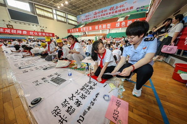 6月1日上午,由中共响水县委宣传部、文化广电和旅游局、响水县教育局共同举办,县税务局协办的“海绿情杯·税务杯”全县第十二届少儿书画百米长卷现场大赛在县体育馆内隆重举行。全县17所小学,1200名少年儿童,以书画为媒,聚集于此,挥毫泼墨,展现风采。