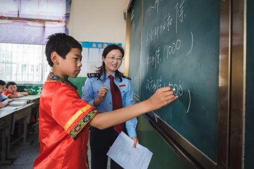中新网阜宁5月31日电 (金浩)六一儿童节前夕,江苏省阜宁县的税务干部们来到芦蒲民族小学开展税法宣传活动。
