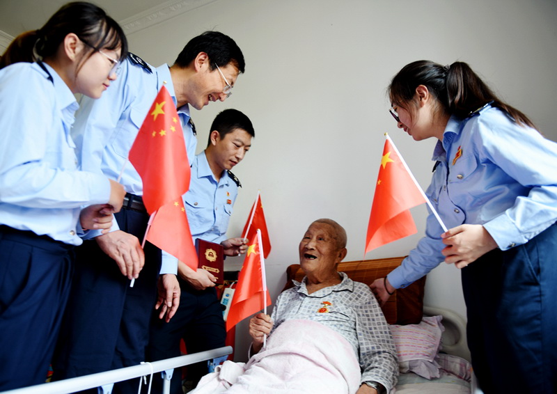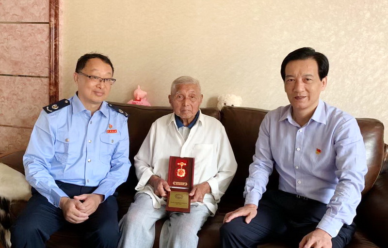 泰州市税务局领导看望离休老干部并赠送“庆祝中华人民共和国成立70周年”纪念章