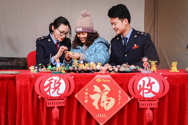 “减税降费‘酱’心独具,个税汇缴一‘醋’即发。这幅春联好”。看着丹徒区税务局青年志愿服务队正向前来“打酱油”的市民宣传个税汇缴相关政策时,非物质文化遗产面塑技艺传承人张娟看着税务干部手里的春联点赞道。