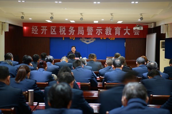 1月14日,经开区税务局召开警示教育大会,邀请市纪委、监委第四纪检监察室一级主任科员洪本科上警示教育课。会议由局党委委员、纪检组长骆向阳主持,区局全体干部职工参加会议。