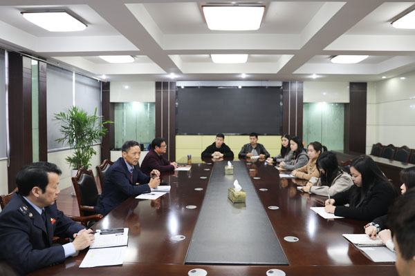 尤敦球副局长代表县局党委对新同志的到来表示热烈欢迎,从县情、局情、税情三个方面向他们做了相关介绍,并提出三点希望:一是要尽快转变角色,熟悉税务工作环境,融入到税务工作中来;二是要认真学习,加强政治理论和业务知识的学习,筑牢工作基础;三是要遵规守纪,以公职人员的标准严格要求自己,树立良好的公仆形象。