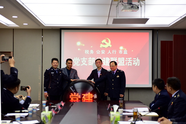 开展四部门支部联盟共建,旨在更好地发挥党建统领发展的政治优势,构建组织和谐、资源共享、协作共赢、优势互的协作关系,进一步加强税务、公安、人行、市监四部门预防和打击违法犯罪工作力度。