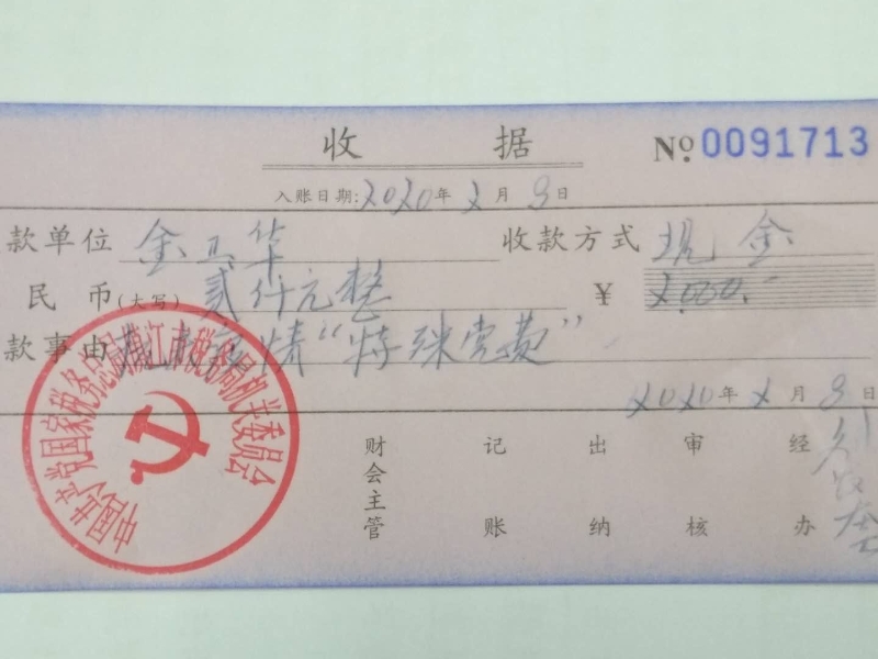 “防控疫情,人人有责。党员有责任有义务带头尽一份力量。我不光要积极参加志愿服务,还要交一笔特殊党费。希望我的特殊党费能为防控疫情帮上点小忙。”2月8日元宵节这天,市局机关党委的金卫华将一笔2000元的特殊党费以微信转账方式,交给了市局机关党委专职副书记邱文伟。