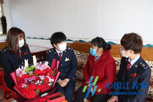 中国江苏网3月8日盐城讯 “玲玲,你在黄石安心救人,家里都挺好的。税务局的女干部今天专门来看望我,带来一大捧鲜花,还有不少三八节的礼物,让我向你送上节日的祝福。”盐城大丰,在出征支援湖北黄石抗击疫情医疗队员张玲玲的家中,张玲玲的母亲捧着大丰区税务局妇委会杨枫送来的鲜花,乐呵呵地同远在湖北战疫一线的女儿通着电话,给她加油鼓劲。