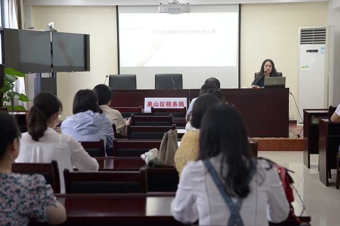 近期,泉山区税务局举办了两场个人所得税专题培训会,辖区内100余家企业、政府事业单位会计参加了本次培训。