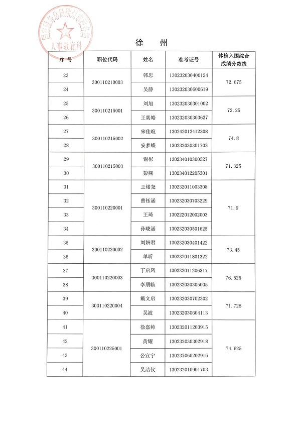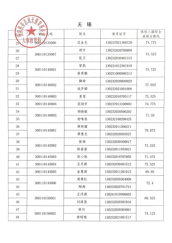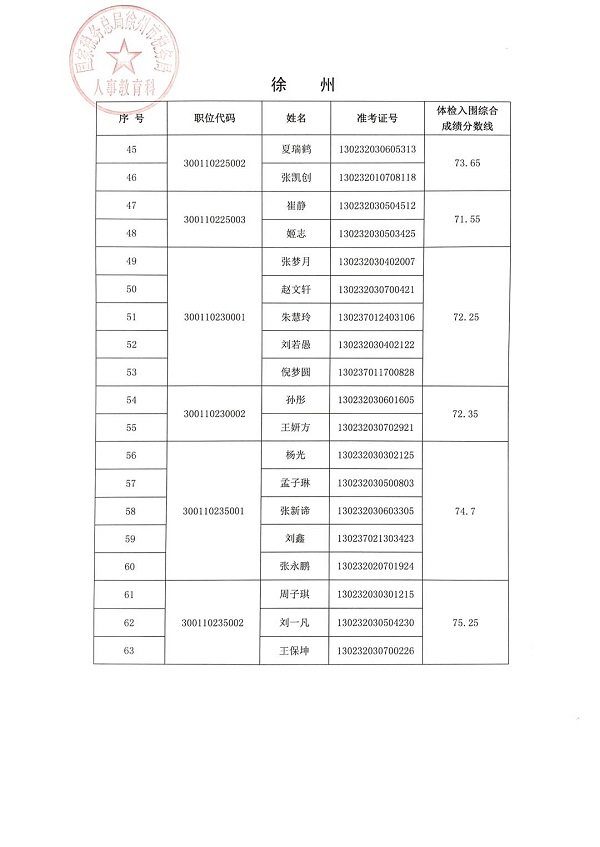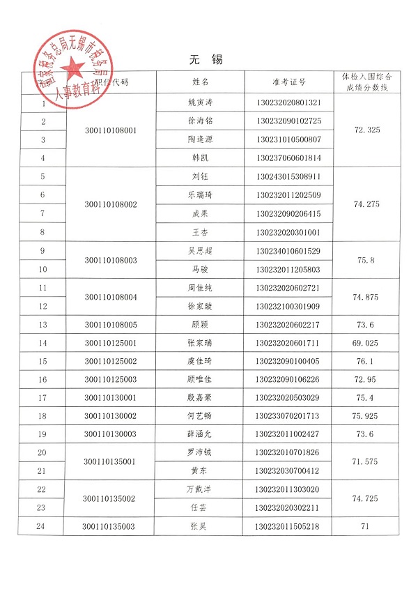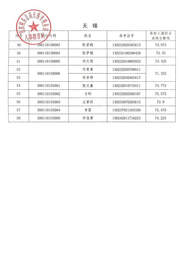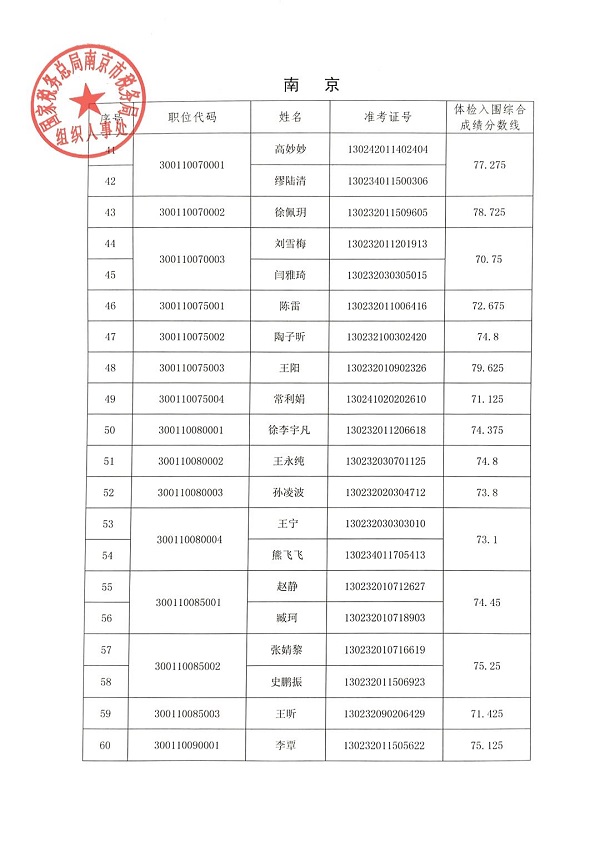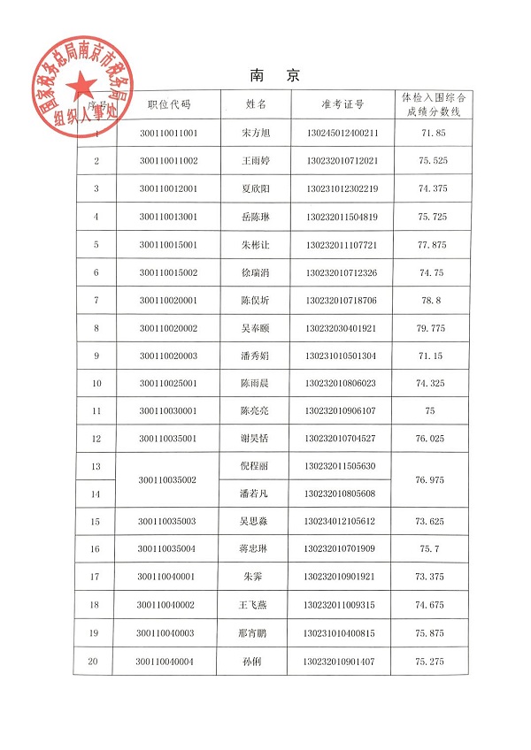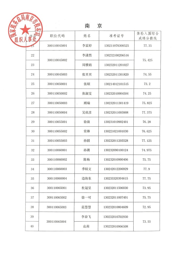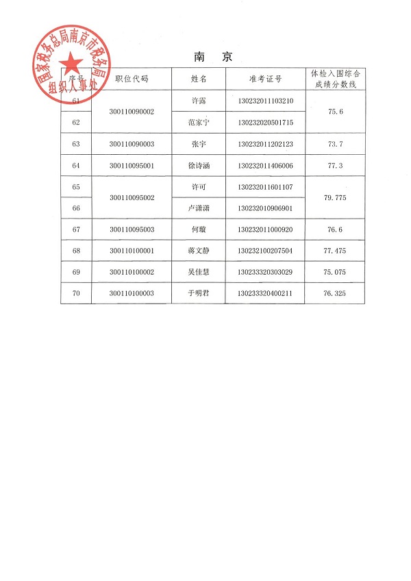 2020年国家税务总局江苏省税务局6月23日面试体检入围人员名单公布