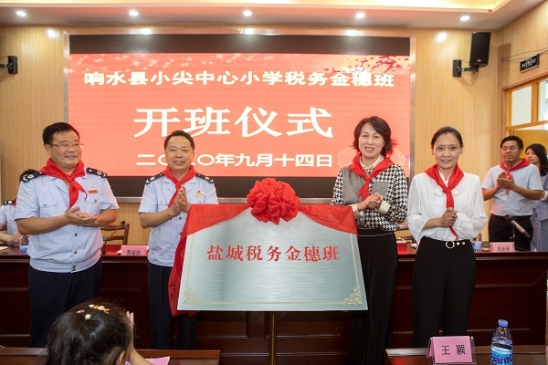金秋时节,丹桂飘香。2020年9月14日,第七届“盐城税务金穗班”开班仪式在响水县小尖镇中心小学举行。盐城市妇联领导王艳、盐城市局领导苏延法、盐城市局机关党委、响水县税务局、响水县教育局、响水县妇联、小尖镇中心小学相关领导和同志参加了开班仪式。