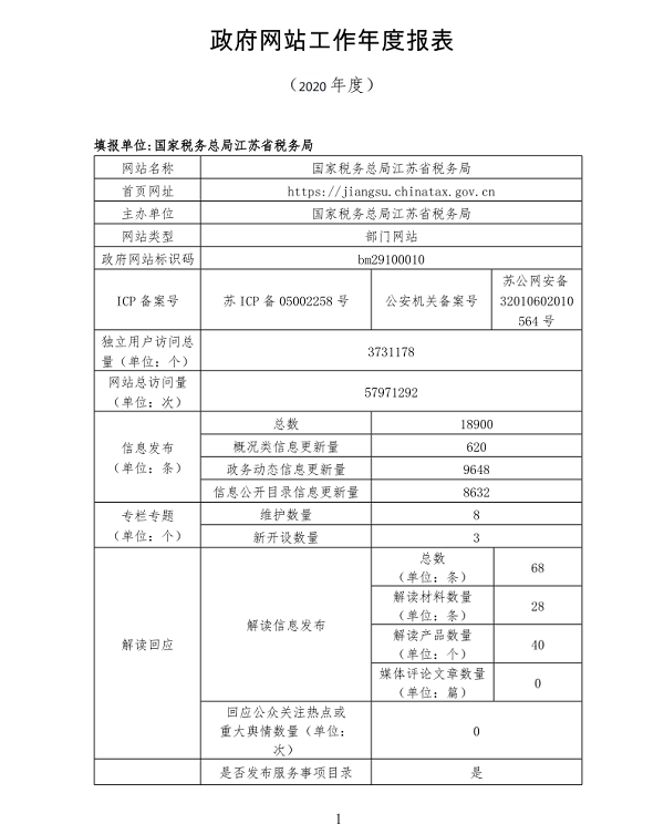 2020年国家税务总局江苏省税务局政府网站工作年度报表