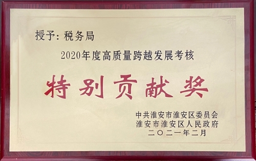 淮安区:淮安区税务局荣获全区高质量跨越发展目标考核“特别贡献奖”