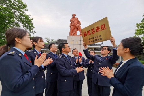 在“杨根思班组”授牌仪式现场,杨根思烈士陵园副主任陆蔚勉励队员们说:“杨根思连是全军第一个以战士名字命名的连队,你们是全市第一个‘杨根思班组’,希望队员们要传承好“三个不相信”精神,赓续精神血脉,汲取信仰力量,在为国聚财、为民收税的岗位上彰显作为。”