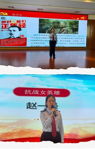 读书分享环节,团员青年向大家深情讲述了陈独秀爱子陈延年、陈乔年,抗日女英雄赵一曼,扶贫税务人韩宇南等先烈和榜样追求真理、顽强拼搏、舍小家为大家的感人故事,激发了全局干部职工进一步坚定理想信念,切实将党史学习转化为为纳税人办好实事、为社会发展贡献税务力量的精神动力。