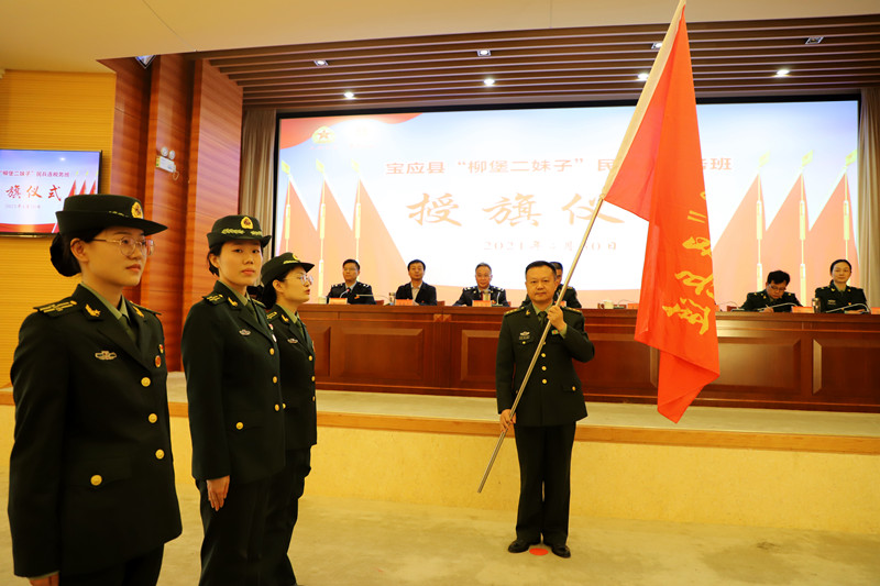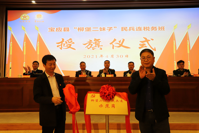 近日,宝应县税务局在附属楼二楼举行了“柳堡二妹子民兵连”税务班授旗仪式。宝应县委常委、县人民武装部政委王梅峰出席仪式并讲话。