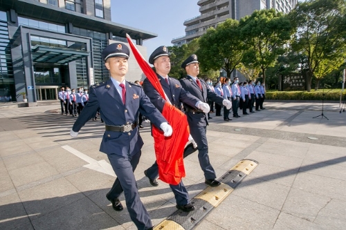 上午8时20分,伴随着《义勇军进行曲》威武雄壮的旋律,全体人员庄严肃立,注视着鲜艳的五星红旗冉冉升起、高高飘扬,衷心祝愿伟大祖国繁荣昌盛,和谐富强。