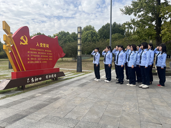 重温入党誓词宣誓。在张纯如纪念馆门口广场,全体女党员整齐列队,庄严地举起右手,重温入党誓词,重拾入党初心,接受党性洗礼。
