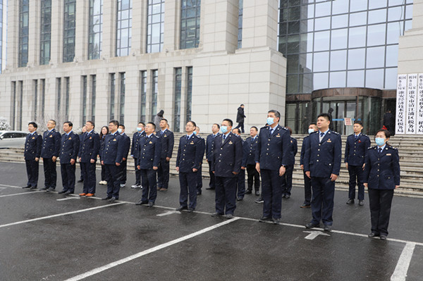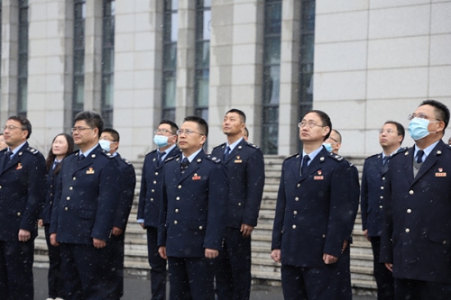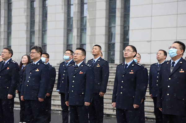 区局班子成员、有分工的职级领导、局内各部门主要负责人参加升旗仪式。
