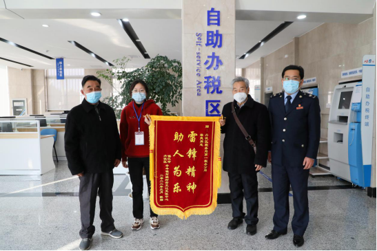 “太感谢税务局耐心周到的服务了,让我们足不出户就能办税,真的很便捷,为你们的服务点赞!”近日,两名年过六旬的老人专程将一面写有“雷锋精神、助人为乐”的锦旗送到国家税务总局镇江市丹徒区税务局第一税务分局工作人员梁爽手中,用最质朴、最真挚的方式表达对税务工作人员的感谢。