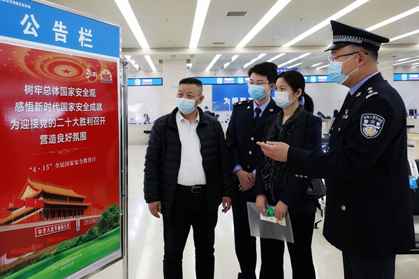 今年4月15日,是我国第7个全民国家安全教育日。鼓楼区税务局以“树牢总体国家安全观 感悟新时代国家安全成就 为迎接党的二十大胜利召开营造良好氛围”为主题,在办税服务厅开展主题宣传教育活动。