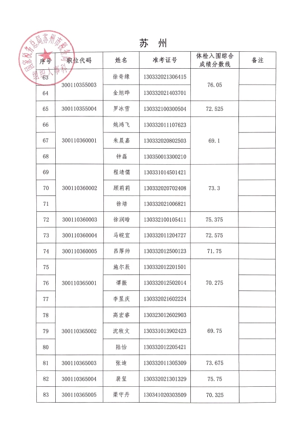 国家税务总局江苏省税务局2022年度考试录用公务员6月27日面试入围体检人员名单公布