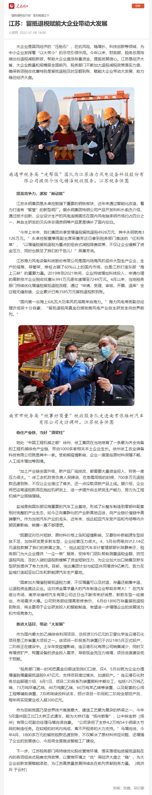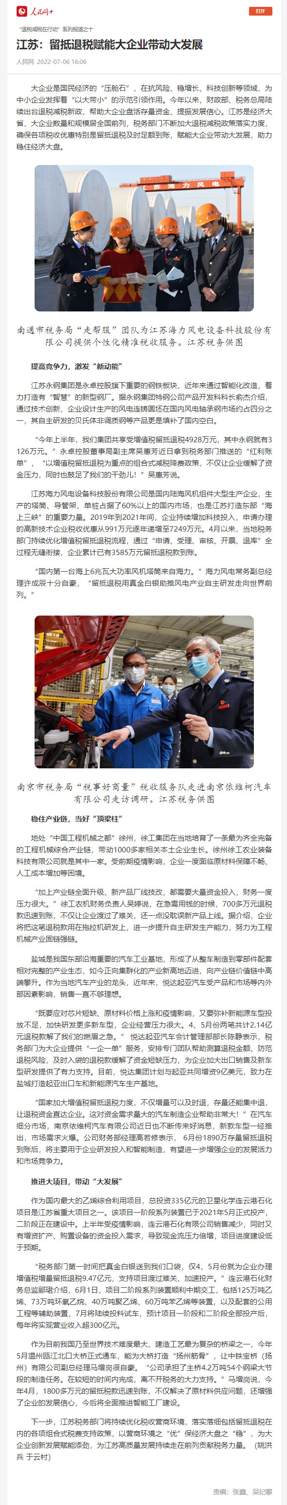 【人民网】江苏:留抵退税赋能大企业带动大发展