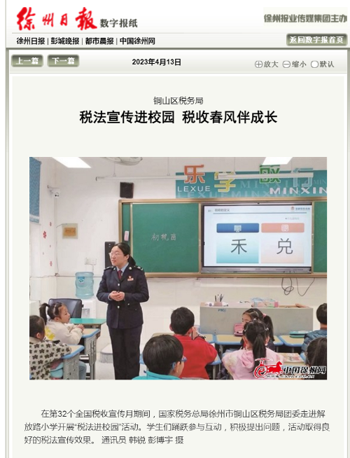 铜山:税法宣传进校园 税收春风伴成长