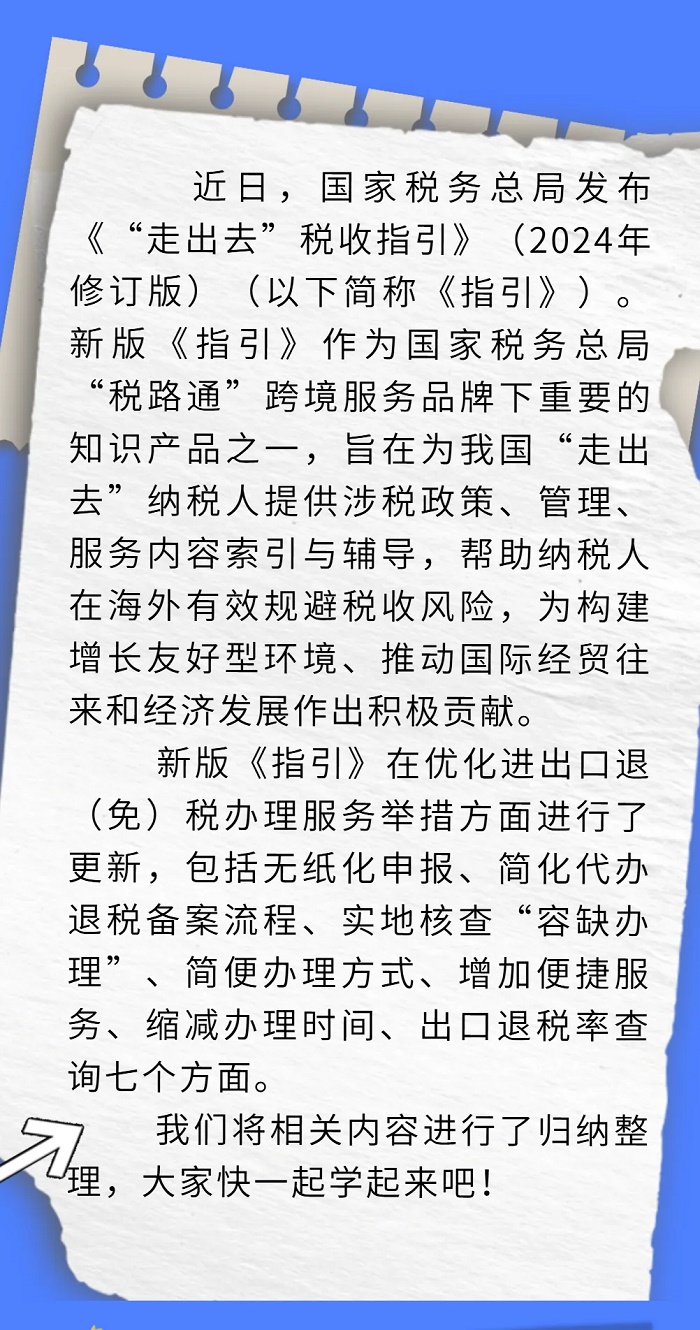 【图解】@“走出去”企业,上新啦!一图看懂优化出口退(免)税办理服务举措